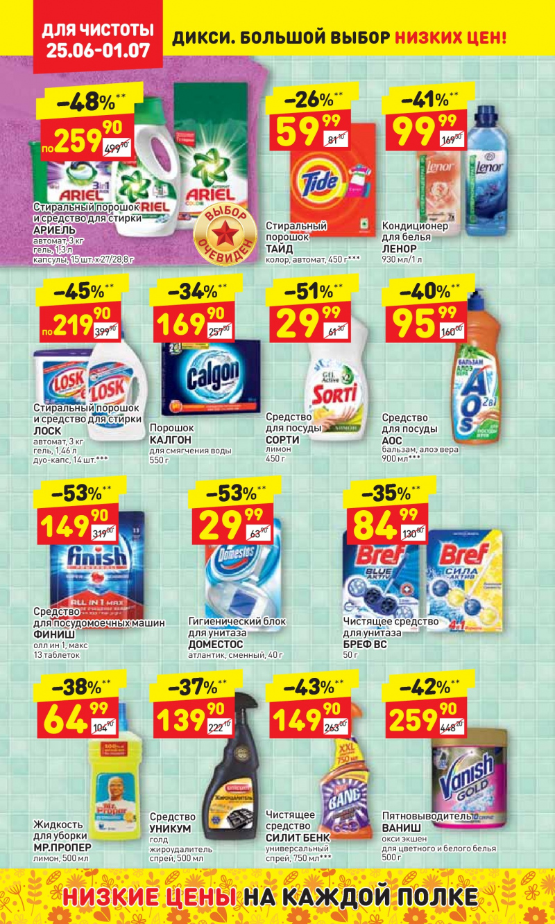 Новый каталог акций в Дикси с 25 июня по 1 июля 2018 года позволит вам гораздо меньше потратить на продукты питания и хозяйственные товары для дома, если бы вы пошли в магазин не подготовленными. Предлагаем вам ознакомиться с акциями Дикси в городе Екатеринбург, и сэкономить на любимых продуктах.